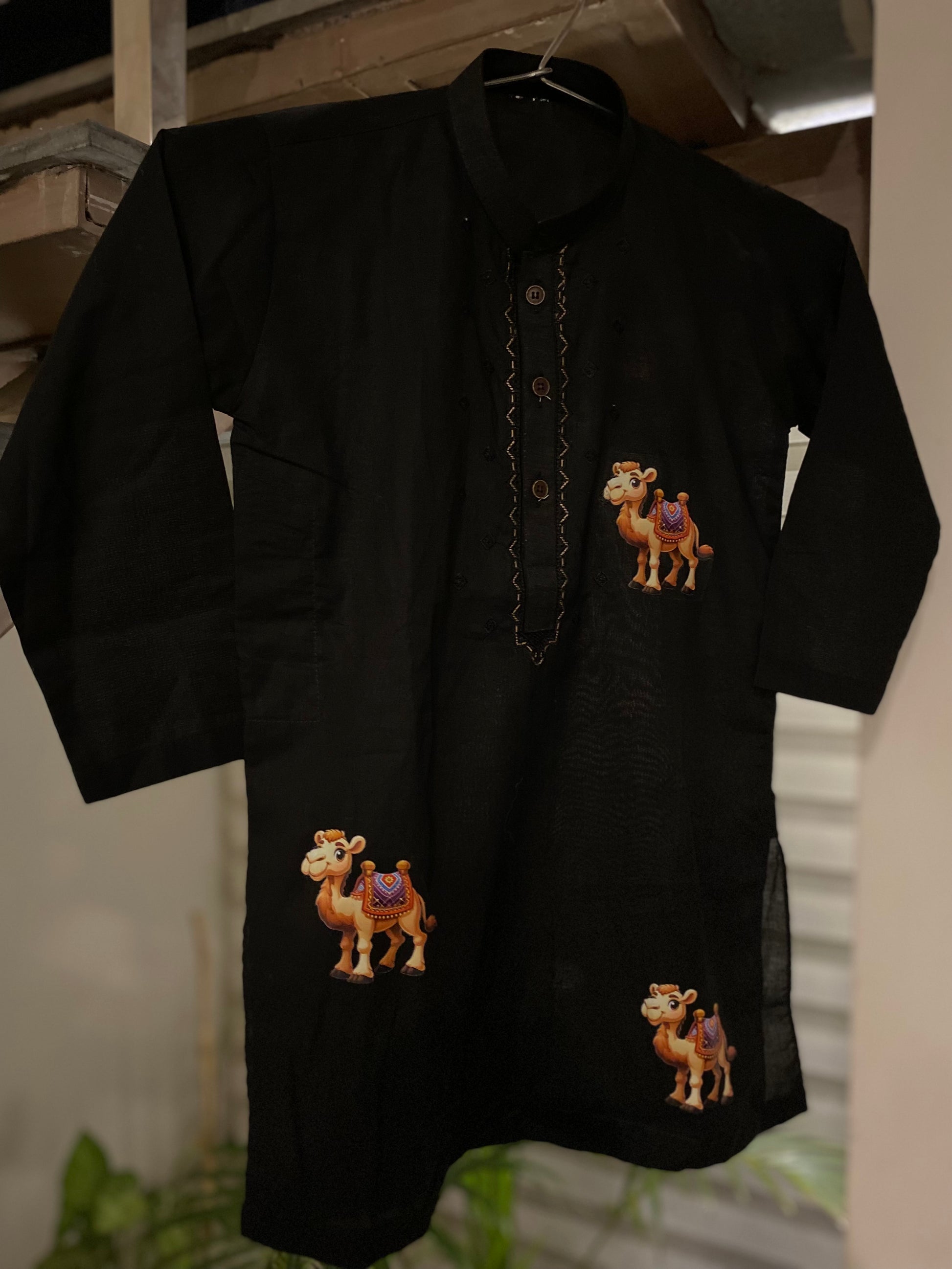 2 piece shalwar kameez with cute camel sticker, best for summer EID collection. Let the cute designs shine
